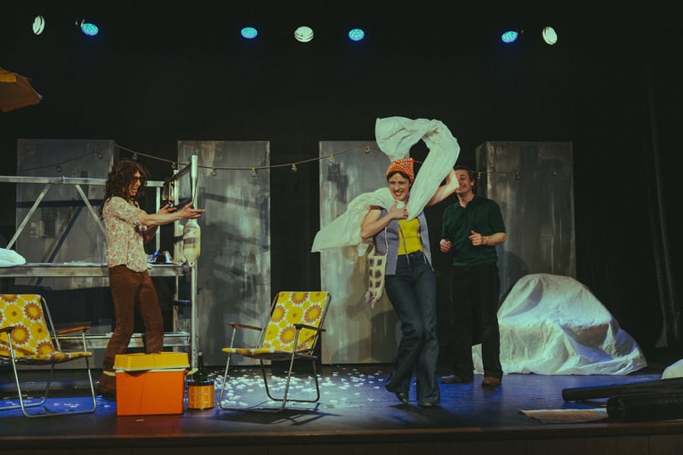 Cette pièce, c’est aussi l’histoire de grandes amitiés. Celle de Léo et de son ami Marco, qui l’aide dans son enquête. Celle de Léopoldine la grand-mère avec sa très grande amie Valentina et enfin celle de ce groupe d’amis qui a réalisé sa propre utopie en construisant son île.